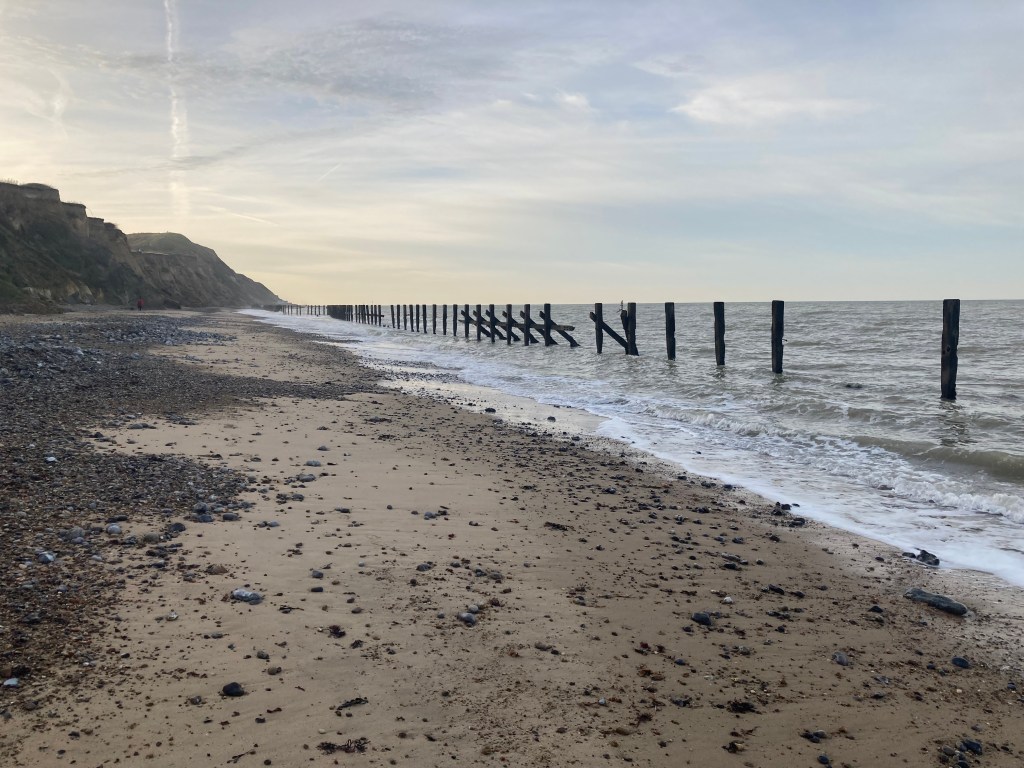 ‘So do not forget!’ the voice says ‘As you walk arm in arm with your own skeleton Down the empty beach Listening to the waves crash against the shore, Do not forget that This cliché feels wrong because there’s more To it. The empty beach Is not empty. Do not forget to ask who built the rotting posts. Not forget to ask who saved your soft and porous skin. The empty beach is not empty. The beach is full of everything That it is not Of all the things and people who kindly Are not here Who have withdrawn from view So that you could have this moment walking solitary on the sand And the clothes you are wearing And your bones Do not forget that all of it is on loan Do not forget that, if special, you are so No more than A single grain of sand between your toes Or the person in the crowd you fail to see tonight in the light’s glare’